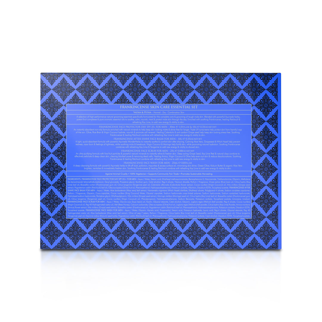 A complete Ayurvedic grooming set designed for men, featuring travel-friendly essentials to cleanse, exfoliate, soothe, hydrate, and protect skin.