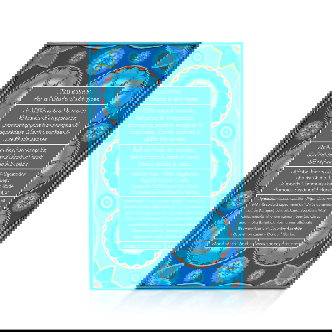 Roll-on finely on temples, behind ears, back of neck & inner wrists.