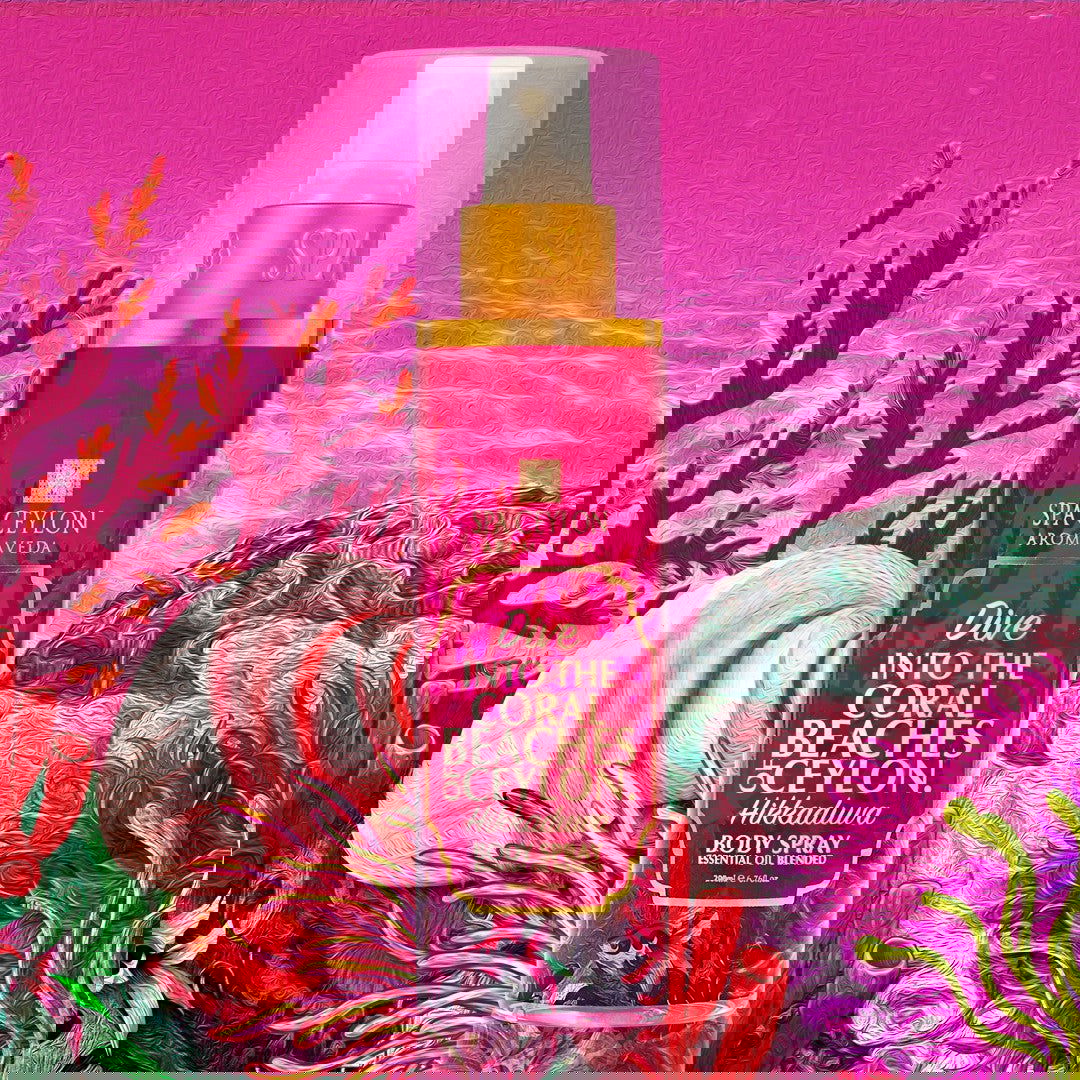 Hikkaduwa Body Spray captures the thrill of sunlit waves & coral shores, leaving a vibrant, uplifting trail wherever you go.