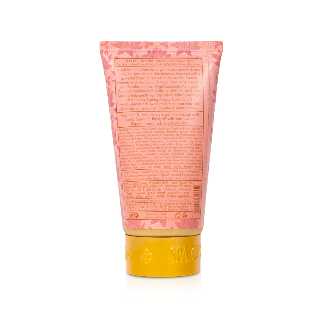 A soft-foaming skin wellness formula to gently cleanse & fortify skin’s delicate balance, infused with potent Ayurveda WonderHerbs. Lotus Leaf Active Cell Extract, Vitamin B12, Rambutan & Kava Kava soothe & calm redness, while Virgin Coconut, Moringa, Almond, Witch Hazel & Aloe Vera hydrate & ease irritation. Arnica, Calendula, Avocado & Rice Bran nourish, leaving skin fresher, smoother, brighter & naturally glowing. Power-packed & effective, yet gentle on skin.