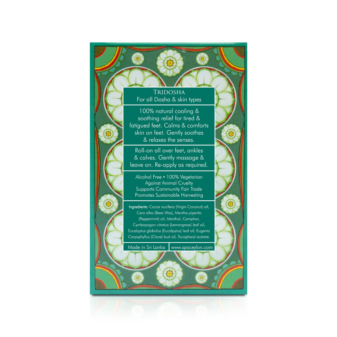 A portable, 100% natural, quick-absorbing & cooling balm roll-on infused with Clove, Peppermint, Organic Lemongrass & Eucalyptus Ayurveda WonderHerbs, to soothe & comfort tired feet, while refreshing the senses