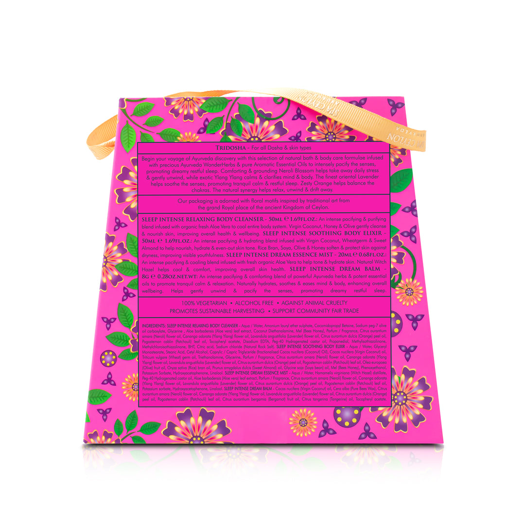 A deeply relaxing Mind & Body self-care ritual infused with deeply calming Ayurveda WonderHerbs & pure aromatic essential oils, to pacify the senses & promote dreamy, restful sleep. Neroli Blossom comforts, Ylang Ylang calms, & Lavender soothes, inviting you to unwind & relax your senses, for deep rest. Includes a Relaxing Body Cleanser, a Soothing Body Elixir, a Dream Essence Mist & a Dream Balm.